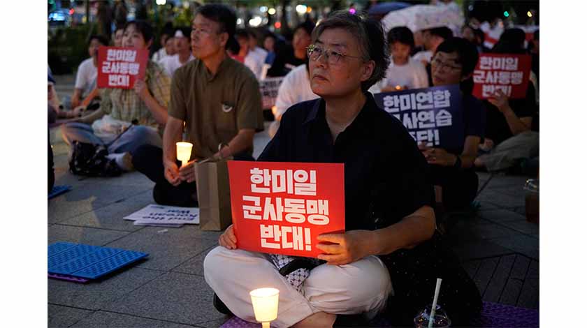 當地時間8月18日晚,韓國民間團體“停戰70年朝鮮半島和平行動”在首爾市中心舉行燭光集會,抗議韓美即將舉行的大規模聯合軍事演習“乙支自由之盾”,反對韓美日加強軍事合作。圖為集會現場。 中新社