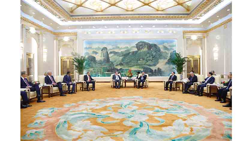 8月21日,中國國務院總理李強在北京人民大會堂會見美中貿易全國委員會董事會主席葛士柏率領的美中貿委會成立50周年訪華團。 中新社