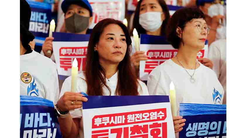 韓國民眾集會抗議日本政府決定啟動核污染水排海