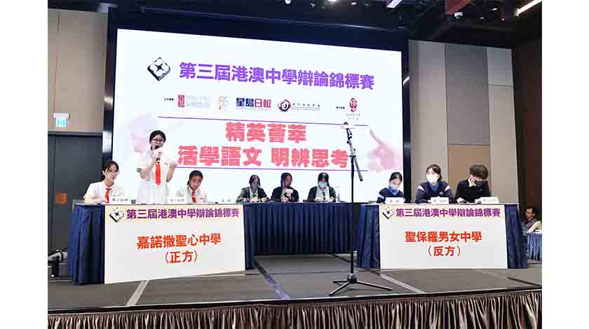 【特訊】由星島日報及澳門演辯學會聯合主辦,香港語文教育及研究常務委員會(語常會)贊助的「第三屆港澳中學辯論錦標賽」在早前舉行,澳門隊陳瑞祺永援中學及嘉諾撒聖心中學赴港比賽,在數據技術中心分別對戰香港隊聖馬可中學及聖保羅男女中學,最終,永援中學繼首屆賽事後再度奪得金獎,而在港澳代表各勝一場下,香港代表學校以1票之差險勝澳門代表學校,衛冕總冠軍寶座。