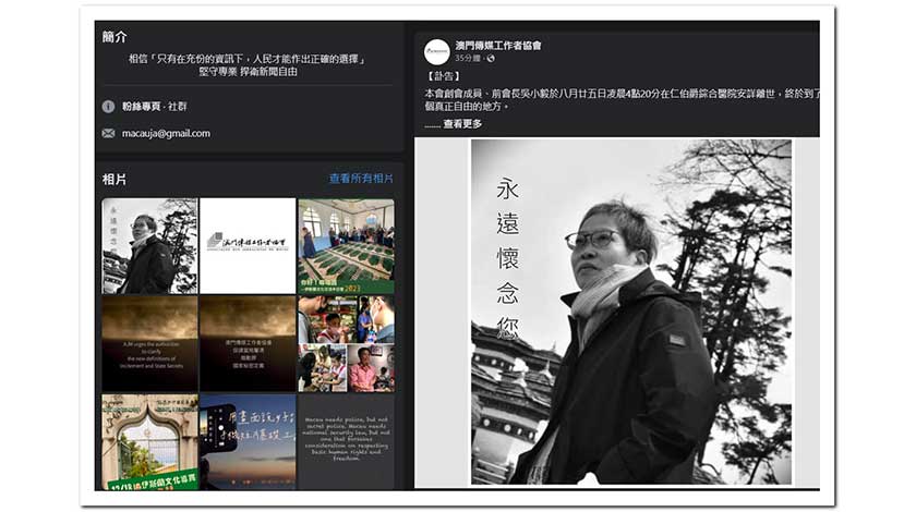 【本報訊】本澳資深記者吳小毅離世。澳門傳媒工作者協會表示,吳小毅為人真誠,正直敢言,從不講違心說話,待人謙遜寬厚,相識遍天下,與人爭辯從不為一己之私;時刻毋忘記者天職,獨立批判、堅持思辨,守護澳門的人、一山一木和良善價值。
