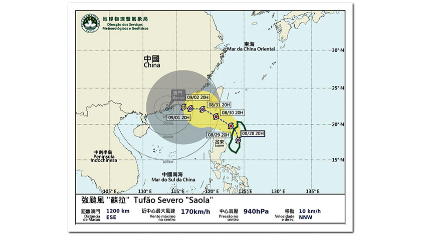 【本報訊】位於菲律賓附近的熱帶氣旋「蘇拉」,正趨向台灣地區以南,預料明(30)日晚間進入本澳八百公里範圍。