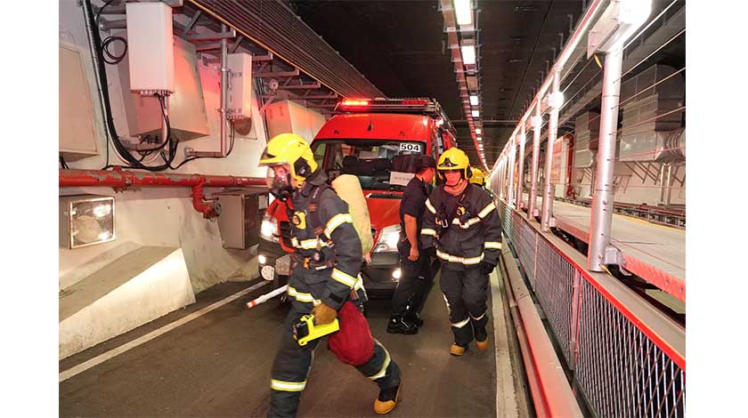 【特訊】消防局於昨日凌晨,在公共建設局配合下,於西灣大橋下層隧道舉行火警演習,以加強輕軌在測試階段發生緊急事故時的溝通協調機制。