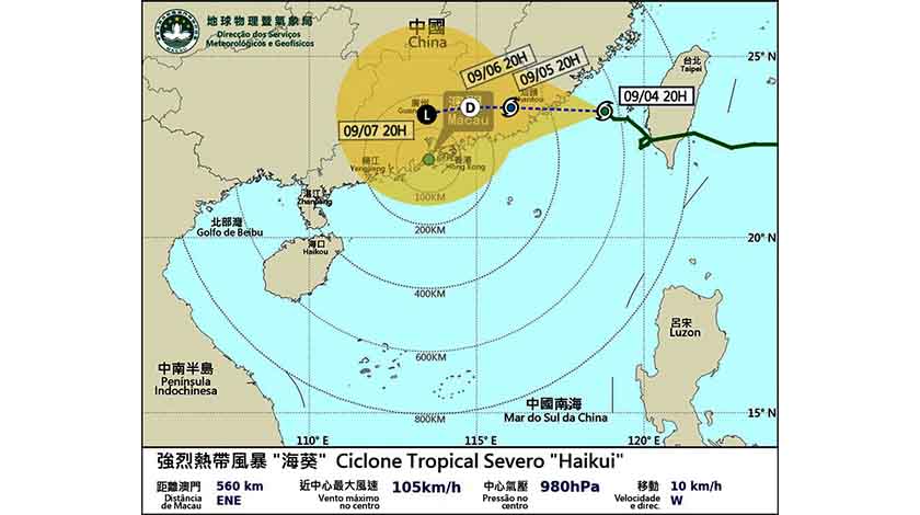 另外,由於近日非天文大潮,且預料「海葵」強度減弱較快,風力不大,因此澳門受風暴潮影響機會低。