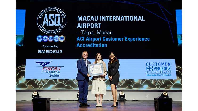【特訊】澳門國際機場於2023年9月1日成功獲國際機場協會(ACI)續頒「機場客戶體驗認證」第二級,在此感謝所有工作團隊 : 他們共同努力為機場旅客提供優質的客戶體驗,助澳門國際機場在2023年續獲這一殊榮。