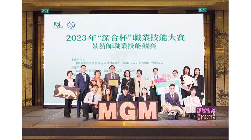 【特訊】為推動中華優秀文化的傳播,促進區域人才的高質量發展,美高梅與橫琴粵澳深度合作區民生事務局、澳門茶藝專業人員協會及深圳市華巨臣國際會展集團有限公司攜手,再度合辦「茗星茶藝師第十屆全國評選大賽粵港澳賽區決賽」及首次合辦「2023年『深合杯』職業技能大賽茶藝師職業技能競賽」(「深合杯」),賽事吸引來自澳門、橫琴、珠海等地的57個單位,87名選手報名參賽。美高梅派出餐飲部成員參賽,當中胥蘭蘭更勇奪「深合杯」賽事冠軍,成績斐然。公司亦特意延伸舉辦美高梅人才發展系列「粵港澳大灣區茶文化交流系列活動 – 『傳承中華文化,映照生命之美』專題講座」,邀請到國家級一級評茶師及一級茶藝技師曾莉,與團隊150位成員及本澳高等院校師生分享和中國傳統文化中兩個重要的文化符號—「茶」與「花」的歷史古今和文化意義,為一連三天的茶藝比賽畫上完美句號。