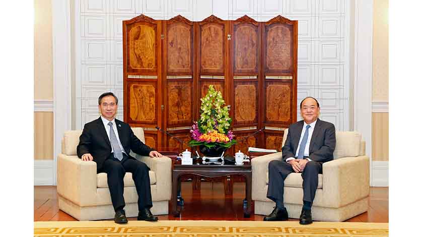 【特訊】行政長官賀一誠昨日在政府總部會見中國國際貿易促進委員會會長任鴻斌一行,雙方就本澳會展商貿的發展、共建粵港澳大灣區等議題交流意見。