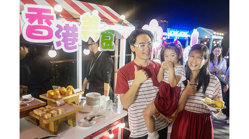 【圖片新聞】香港啟動“香港夜繽紛”活動。9月14日,香港特區政府財政司司長陳茂波在西九文化區主持“香港夜繽紛”啟動禮,希望能讓市民有多點興趣在晚間走出家門,令市面可以更旺。圖為“香港夜繽紛”活動啟動禮上介紹香港美食。(中新社)