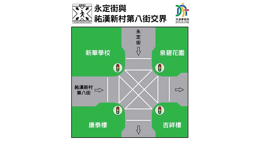 【特訊】經分析祐漢區內的道路條件、過路環境及車輛通行流量後,將在永定街與祐漢新村第八街交界增設交通燈及斜行過路設施,9月20日(周三)上午完成地面標線及相應配套工作後正式啟用。