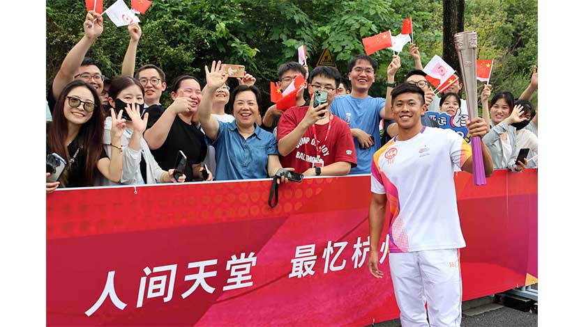 【特訊】『第十九屆亞洲運動會』將於本月23日至10月8日在浙江省杭州市舉行,本澳游泳運動員周文顥昨(20) 日代表中國澳門體育代表團,參加在杭州市舉行的火炬傳遞活動,喜迎亞運會的到來。周文顥昨(20)早以第44棒火炬手參與火炬傳遞,與其他國家及地區運動員、社會人士共同參與這項具意義的活動,周文顥在火炬傳遞過程受到現場人士熱烈歡呼。