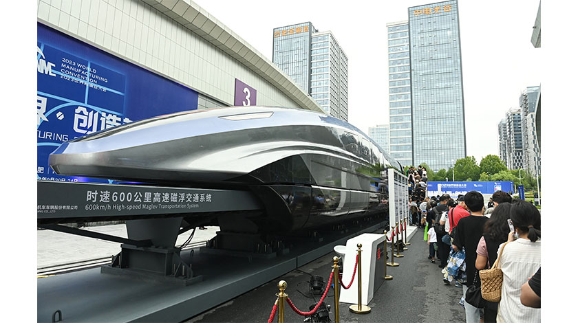 9月20日,觀眾參觀由中國自主研製的時速600公里高速磁浮交通系統。當日,2023世界製造業大會在安徽省合肥市啟幕,本次大會以“智造世界·創造美好”為主題,聚焦量子科技、人工智能、高端裝備、智能家電等領域。 中新社