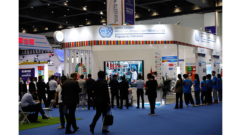 9月26日,第十四屆中國河南國際投資貿易洽談會在河南鄭州舉行。圖為展覽上的聯合國工業發展組織展區。 中新社
