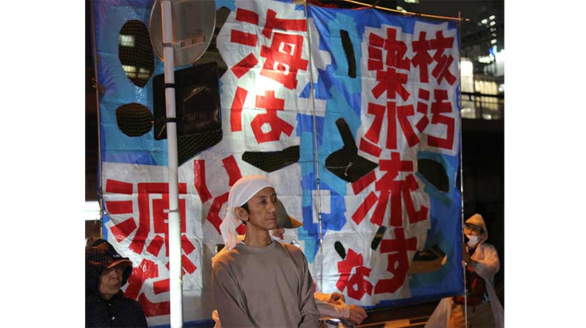 當地時間10月4日晚,日本民眾冒雨在位於東京千代田區的東京電力公司總部附近舉行集會,強烈反對福島核污染水排海。 中新社