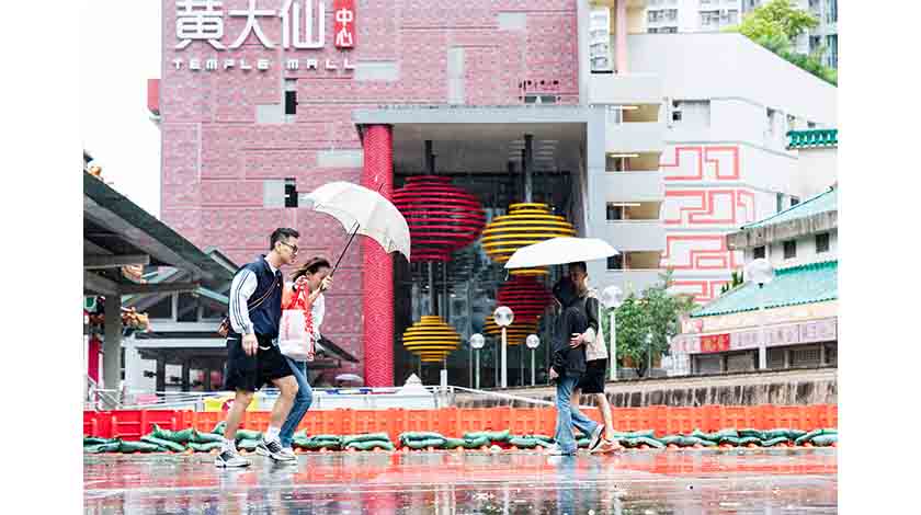 荃灣市區同樣風力明顯增強,在風雨夾擊下,商場和街道上的行人減少,但部分茶餐廳依然維持營業。區內巴士線陸續停駛,不少民眾在巴士站排隊趕尾班車回家。