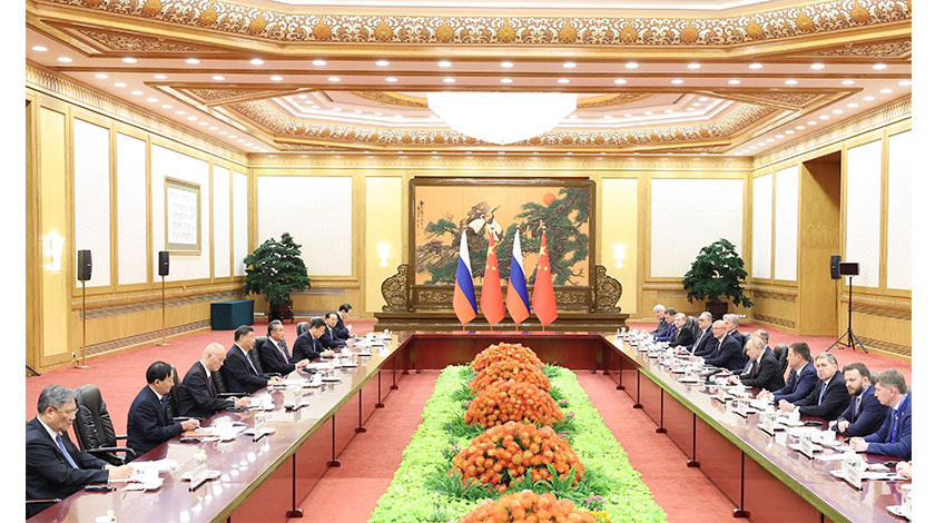 10月18日中午,國家主席習近平在北京人民大會堂同來華出席第三屆“一帶一路”國際合作高峰論壇的俄羅斯總統普京舉行會談。 新華社