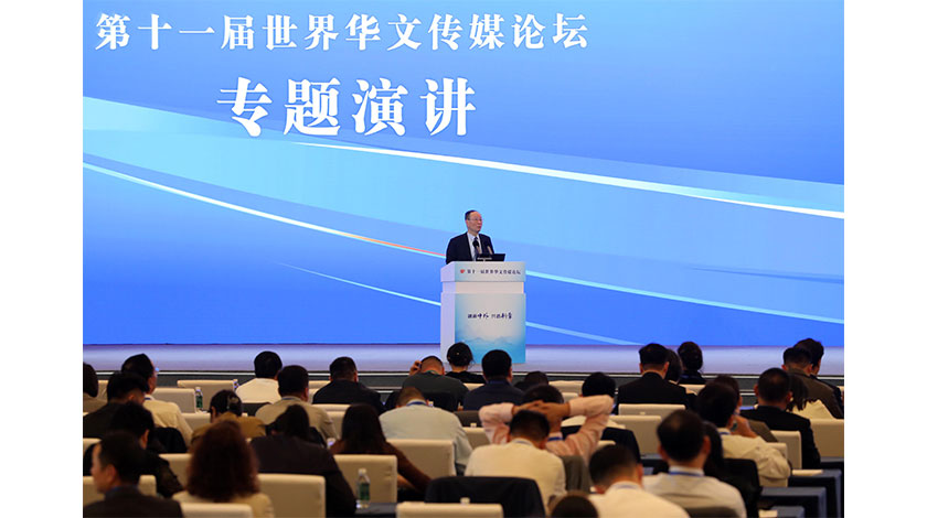 10月23日,由國務院僑務辦公室、四川省人民政府和中國新聞社主辦的第十一屆世界華文傳媒論壇在成都開幕。圖為中國國際經濟交流中心副理事長王一鳴發表專題演講。中新社
