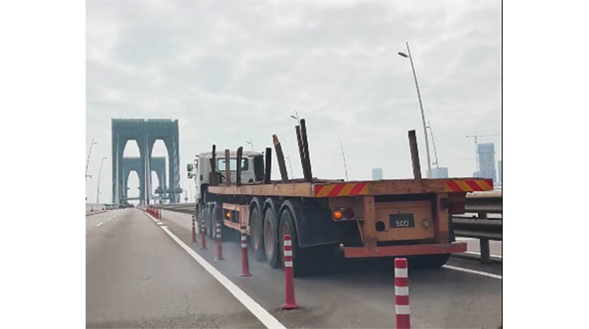 網傳短片顯示,該輛貨車非常巨型,合共有六條輪軸,即十多個輪胎,從西灣大橋媽閣入口駛入電單車專道。行駛了一段路程後,估計司機發現入錯線,在一個缺口處駛回汽車道,過程中沒有發生任何碰撞。該短片引起網民圍觀,有網民說笑大讚司機駕駛技術高超,「沒有碰到水碼和彈力杆」。