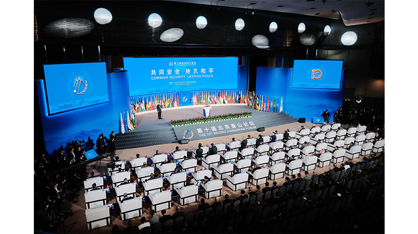 第十屆北京香山論壇在中國首都北京開幕。 第十屆北京香山論壇開幕式週一在北京國際會議中心舉行。 (新華社)
