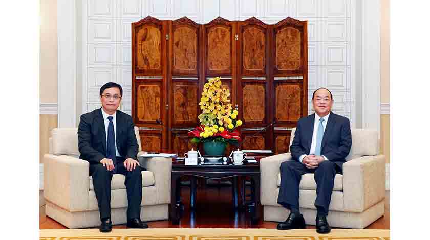 【特訊】行政長官賀一誠昨日在政府總部會見國家中醫藥管理局副局長、中國中醫科學院院長、中國科協副主席、中國工程院院士黄璐琦一行(見圖),雙方就加快澳門中醫藥發展、推進大健康產業等議題交流意見。