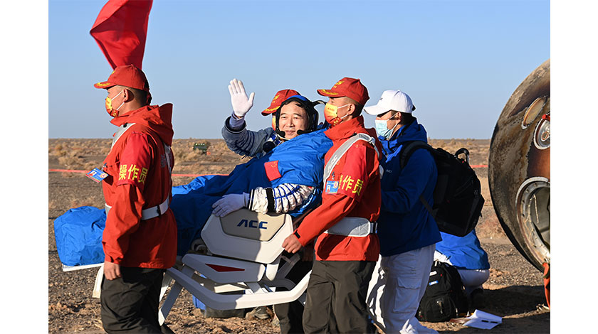 北京時間10月31日8時11分,神舟十六號載人飛船返回艙在東風著陸場成功著陸,現場醫監醫保人員確認航天員景海鵬、朱楊柱、桂海潮身體健康狀況良好,神舟十六號載人飛行任務取得圓滿成功。圖為航天員景海鵬安全順利出艙。 中新社