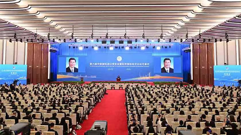 11月5日,中國國家主席習近平向第六屆中國國際進口博覽會致信。當日,第六屆中國國際進口博覽會在上海市開幕。 中新社