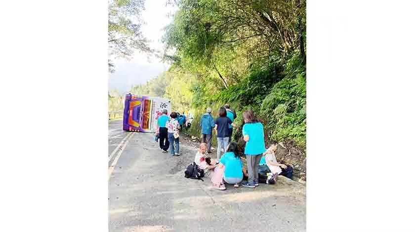 【香港中通社11月5日電】台北消息:台灣宜蘭一輛遊覽車5日在太平山下山途中失控側翻,造成車上36人受傷,1人當場死亡。