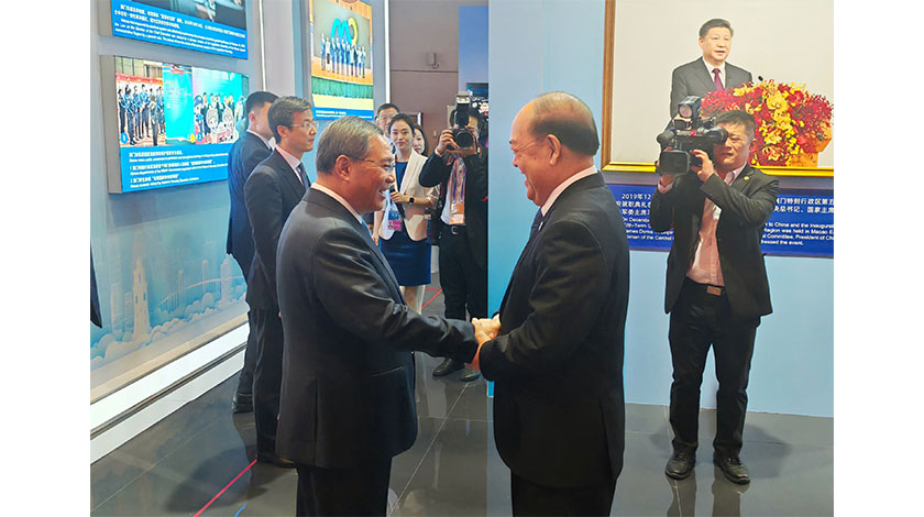 行政長官開幕式後在中國館澳門展區,向李強總理等介紹澳門展區內容及澳門的整體發展現況。澳門展區的主題為“澳門‧新時代 新成就”,展示了“堅持與時俱進,提升治理水平”、“堅持開拓創新,推動經濟持續健康發展”及“展望澳門未來發展藍圖”三大主要內容。
