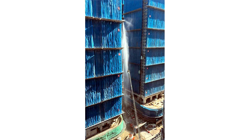 【本報訊】黑沙環新填海區P地段暫住房地盤,昨日下午發生火警,消防員發現二十七樓棚架著火,升起雲梯射水灌救,消防於現場發現兩個煙蒂,火警原因不尋常,列作縱火轉交司警處理。