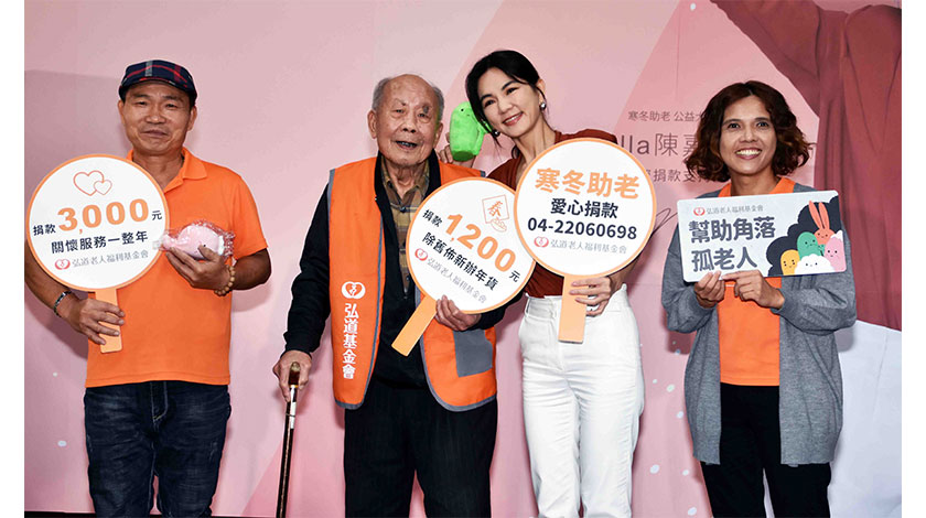 台灣藝人Ella(陳嘉樺)出席弘道老人基金會 “寒冬助老,刻不容緩”獨居弱勢長輩關懷計劃起跑活動,希望4個月內募集3000萬元台幣助老服務經費,幫助獨居老人走出寒冬。 (香港中通社)