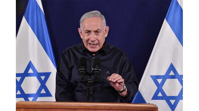 11月18日,以色列總理內塔尼亞胡在特拉維夫出席記者招待會。