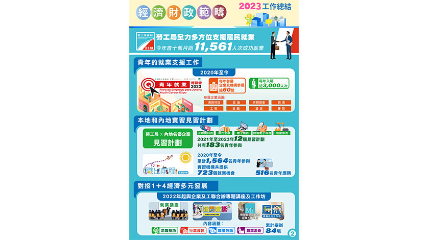 【特訊】勞工局積極推動居民就業,2023年1月至10月累計協助11561人次獲聘,涉及建築業有808人,為去年2022年全年透過勞工局成功就業人數(6288人次)的1.8倍,約相當於2023年7月至9月就業調查中本地居民勞動人口的4%。