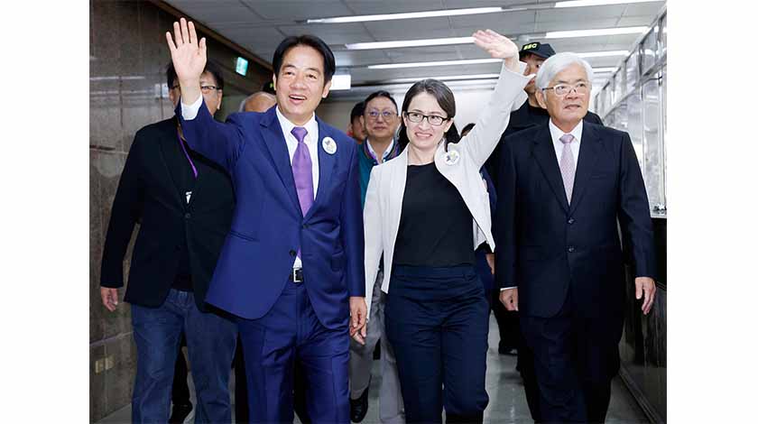 賴清德(左)與搭擋蕭美琴(中)完成登記參選。(香港中通社)