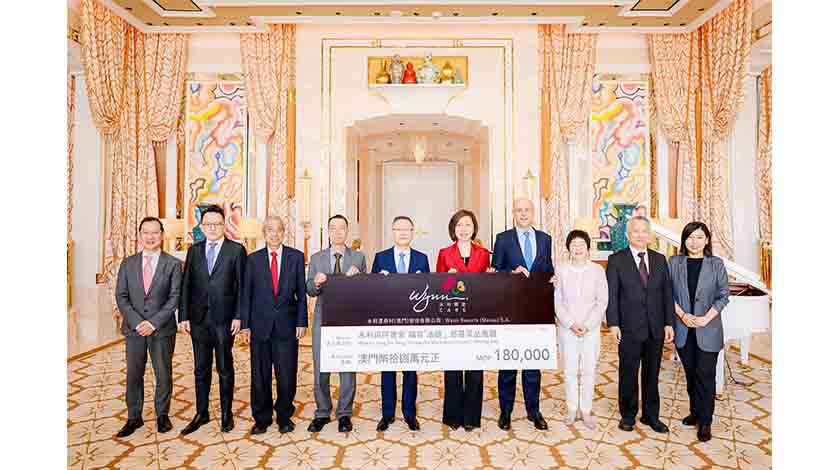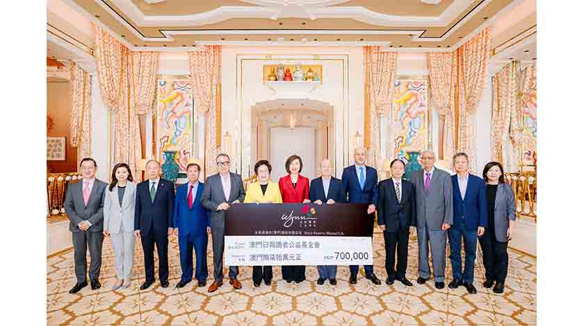 捐贈儀式日前於永利皇宮舉行。永利澳門有限公司總裁 董事會副主席陳志玲、永利澳門有限公司營運總裁兼執行董事羅偉信、永利澳門及永利皇宮社區及政府關係副總裁張詩敏及助理副總裁李勁源,代表永利將善款支票交予澳門日報讀者公益基金會,並由該基金會會長賀定一、副會長飛安達、陸波、王彬成、許建章、理事長黃國勝、監事長吳柱邦、副理事長溫能漢及何凱玲代表接受。