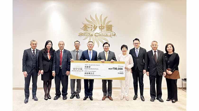 【特訊】金沙中國有限公司日前向澳門同善堂捐贈澳門幣70萬圓,自2004年起持續響應一年一度的「沿門勸捐」籌款活動,支持同善堂各項慈善服務。