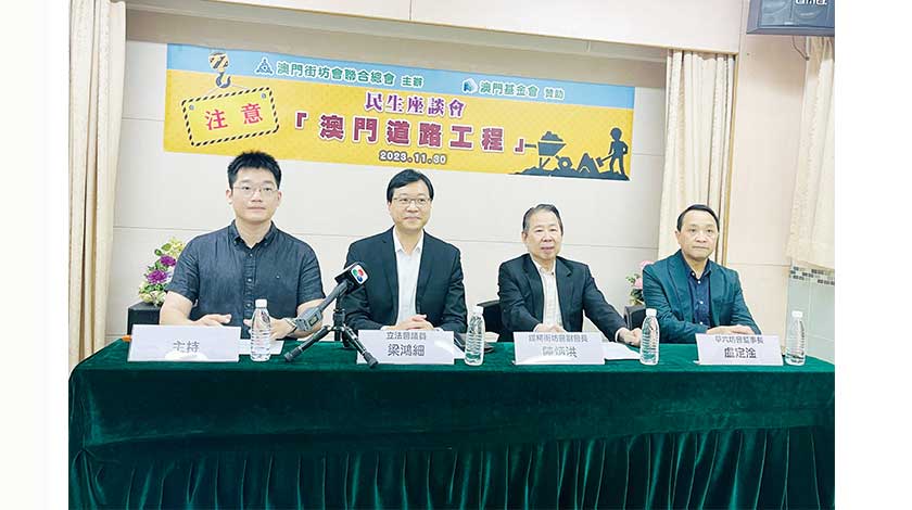 座談會昨邀請立法議員梁鴻細、提柯街坊會副會長陳炳洪、草六坊會監事長盧定淦擔任嘉賓。梁鴻細表示,有部分施工單位由於憂慮工程超時罰款,故對工期提出較寬鬆的申請,令施工期比實際長。他建議,監管部門要控制好工程的施工期,同時,在人資上,按工程需求作出適量的外僱額審批,令工程不會因缺乏人資而出現延誤的情況。