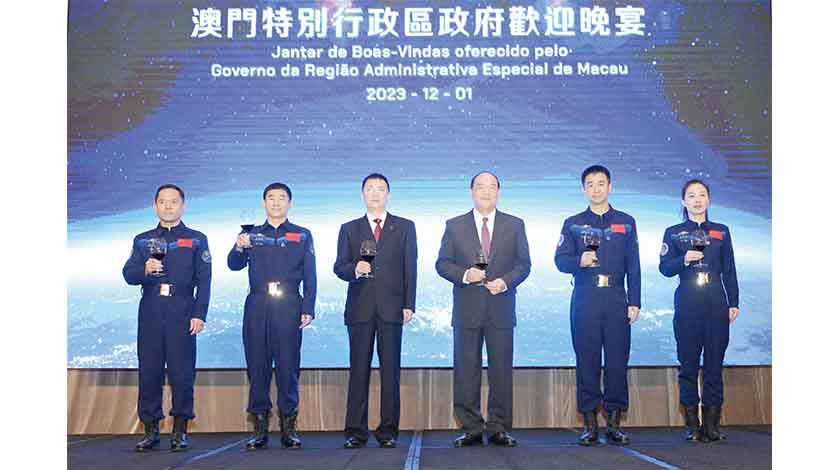【特訊】澳門特區政府昨日晚上舉行儀式歡迎中國載人航天工程代表團訪澳。行政長官賀一誠表示,這次代表團訪澳,讓澳門青年學生再次目睹國家航天英雄的風采,彰顯國家對澳門科技教育的關心和支持,意義重大。特區政府會積極為國家及特區培育具備家國情懷的科技領域人才,作出應有貢獻。