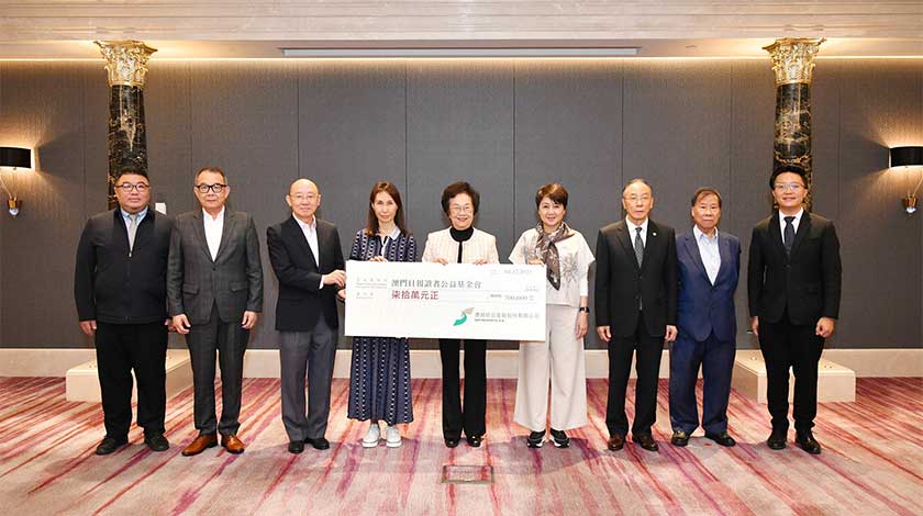 支票遞交儀式當天於澳門上葡京綜合度假村舉行,澳娛綜合常務董事何超鳳、董事兼員工福利諮詢委員會主席梁安琪將善款支票交予澳門日報讀者公益基金會,由賀定一會長、黃國勝理事長、陸波副會長、飛安達副會長、許建章副會長、林家偉副理事長,以及胡玉沛副理事長代表接收。