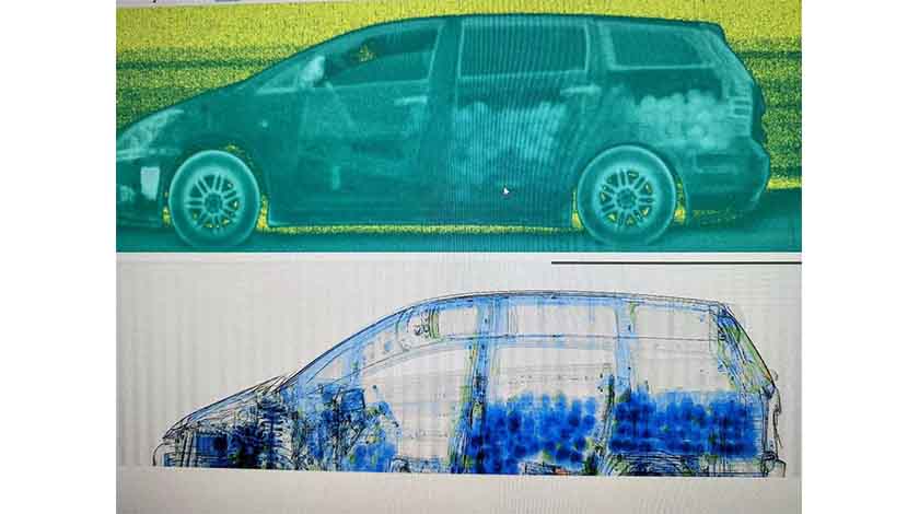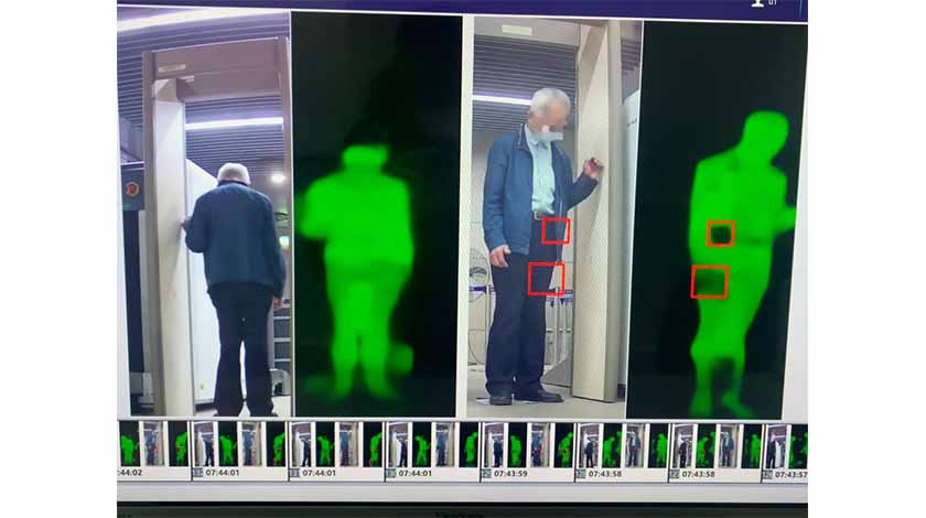 於四日上午,關員在關閘口岸出境旅客檢查區發現一名男子形跡可疑,經使用太赫茲人體成像安檢系統檢查後,發現該男子將四十件美妝產品藏於腰間及小腿企圖運出境。