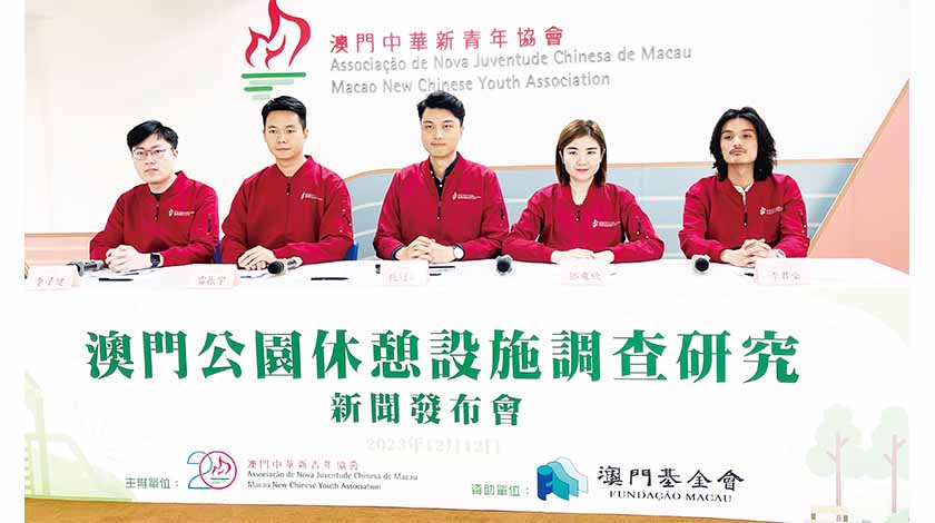 【本報訊】 澳門中華新青年協會昨發布「澳門公園休憩設施調查」研究結果。調查發現,四成九的受訪澳門青年明確認為澳門的公共休憩空間總體不足,新青協建議,政府積極增設公園休憩用地,及早推進新城 A 區濱海綠廊和公園的建設。