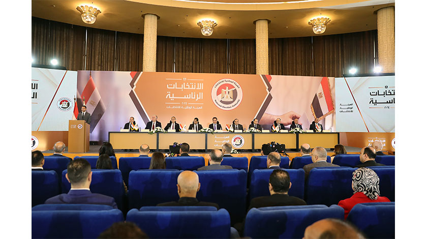 18日在埃及首都開羅拍攝的埃及全國選舉委員會新聞發佈會現場。 埃及全國選舉委員會18日宣佈總統選舉結果,現任總統塞西獲勝。新華社