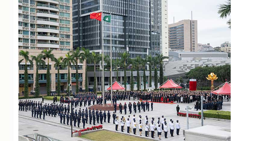 【本報訊】為慶祝澳門回歸祖國廿四周年,特區政府昨日上午在金蓮花廣場舉行升旗儀式。