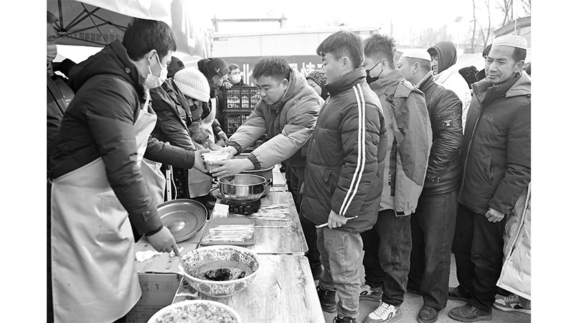 位於甘肅臨夏州積石山縣的大河家鎮安置點,救援人員不斷轉運、發放生活物資,志願者提供愛心餐食等,保障受災民眾基本生活。 中新社