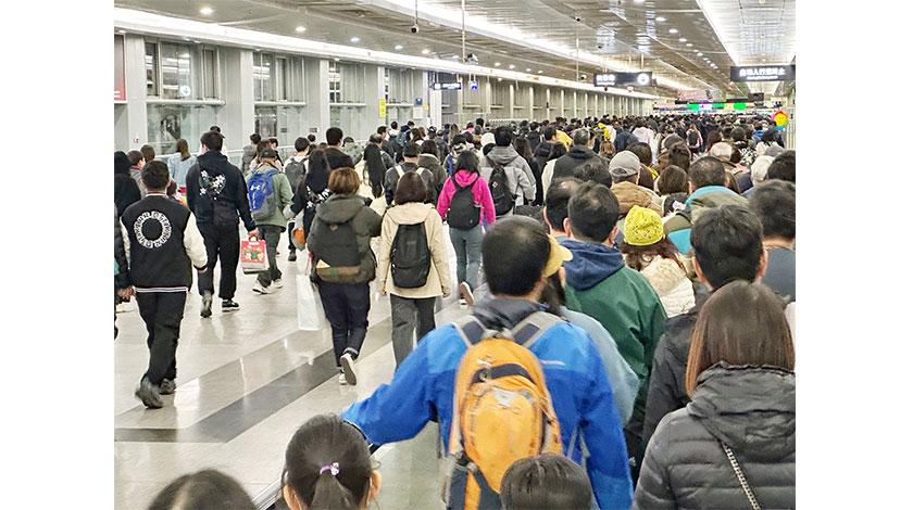 【圖片新聞】 聖誕節長假期,香港出入境人次連續第三日超過100萬。昨日(25日)有超過101萬人次經各口岸出入境,當中經羅湖和落馬洲支綫口岸出境的港人均超過8萬人次。圖為大批旅客經落馬洲口岸出入境。(香港中通社)