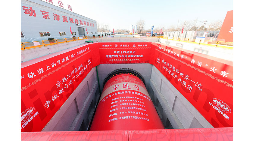 12月28日,開挖直徑達13.3米、總長約138米、主機總重量約1800噸的國產超大泥水平衡盾構機“京通號”在北京城市副中心順利始發,京唐城際鐵路運潮減河隧道工程正式進入盾構掘進階段。“京通號”是目前北京直徑最大的高鐵隧道盾構機,預計將用5個月時間前進1285米,並與正在建設的城市副中心站綜合交通樞紐連通。圖為“京通號”盾構機。 中新社