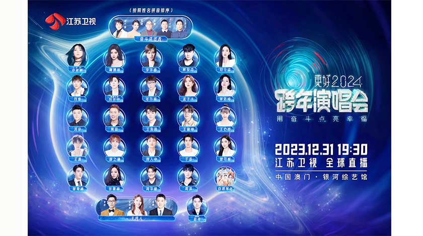 作為全國乃至全球華人地區都家喻戶曉的跨年活動,江蘇衛視跨年演唱會向來以星光耀眼的明星陣容,天馬行空的舞台設計,以及兼具視聽震撼和藝術享受的演出內容蜚聲海內外。該活動已連續七年落地中國澳門《更好2024江蘇衛視跨年演唱會》將是其首次移師至全澳最新最大的銀河綜藝館舉辦。今年的晚會將繼續圍繞,用奮鬥點亮幸福」這一主題,圍繞,幸福是什麼」這一時代話題,精心提煉五大篇章,創新的節目編排配以一眾實力唱將的傾力演出,旨在打造一場最具時代情懷和熱點話題的跨年盛會。