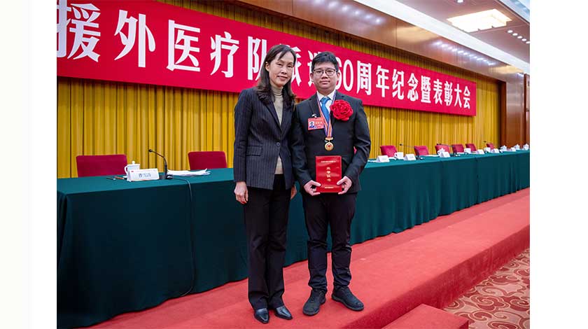 【特訊】今年是中國援外醫療隊派遣60周年,為弘揚中國醫療隊無私奉獻的精神,表彰先進,樹立典型,早前經中央批准並由國家衛生健康委員會發佈《關於表彰全國援外醫療工作先進集體和先進個人的決定》,授予第 29批援幾內亞中國醫療隊等 30個集體“全國援外醫療工作先進集體”榮譽稱號,及60名“全國援外醫療工作先進個人”榮譽稱號。昨日,澳門特別行政區政府社會文化司歐陽瑜與衛生局仁伯爵綜合醫院繆智豐主治醫生,出席由國家衛生健康委員會於北京主辦的中國援外醫療隊派遣60周年紀念暨表彰大會,其中,第25隊協調員、繆智豐主治醫生被評為“全國援外醫療工作先進個人”榮譽稱號。
