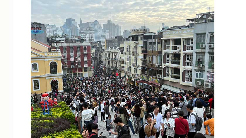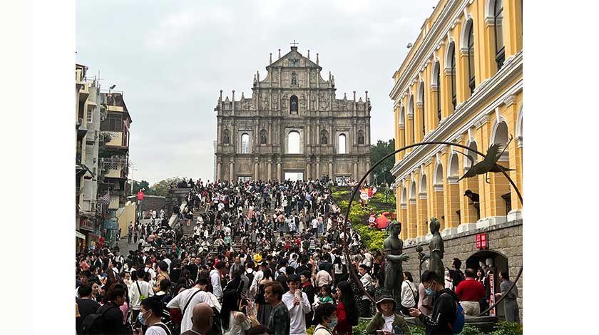 【本報訊】在內地三天元旦假下,大批旅客湧澳。繼前天的十三萬八千多旅客訪澳後,昨今年最後一天的除夕錄得逾十七萬旅客入境,為今年及新冠疫情爆發以來的最多。市面交通擠塞,旅客處處,警方一度在大三巴街實施人潮管制措施。