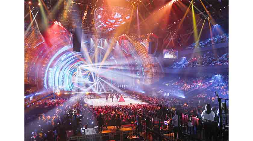 本次江蘇衛視跨年演唱會首次移師至銀河綜藝館即收獲滿堂喝彩。主辦方引進國內外殿堂級團隊,充分利用場館無可比擬的空間使用靈活性和可塑性,突破性串連了銀河綜藝館及銀河國際會議中心兩個重量級活動場館,並創新性啟用雙舞台設計,使舞台面積擴展至超過2000平方米,問鼎大灣區室內場館舞台面積之最。活動現場被打造成一個沉浸感十足的宇宙空間,借助場館所配備的尖端高清播放技術及無視覺遮擋設計,搭建出長達40米、高逾25米、寬逾60米的巨型「蟲洞」作為舞台視覺重心。搭配面積超過2200平方米的LED顯示屏以及接近200噸的舞台美術效果設備,輔以最前沿的虛擬黑科技加持,「宇宙飛碟」等天馬行空的視覺元素活靈活現地「穿越」到現場,帶來了前所未有的視覺震撼,不時引發觀眾的陣陣驚嘆。