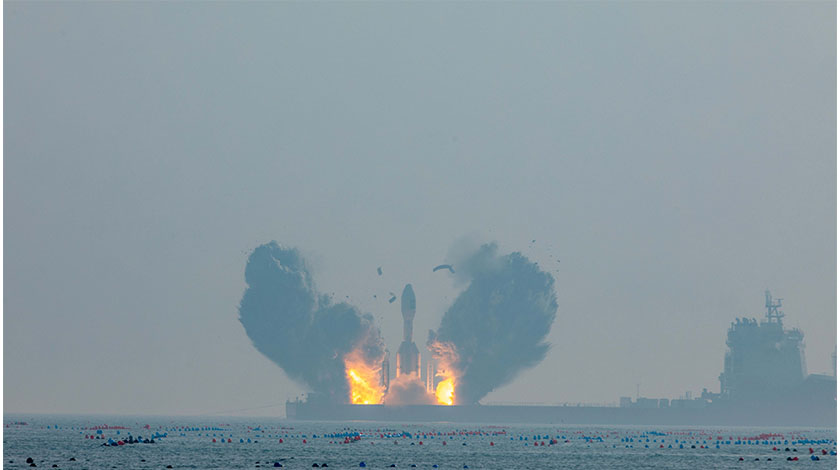 北京時間1月11日13時30分,引力一號遙一運載火箭由太原衛星發射中心在山東海陽附近海域點火昇空,將雲遙一號18~20星3顆衛星送入預定軌道,飛行試驗任務獲得圓滿成功。這是引力一號火箭首次飛行,刷新全球運力最大固體運載火箭、中國運力最大民商運載火箭紀錄。 中新社發