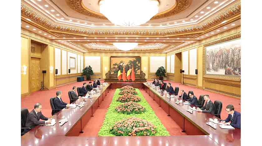 習近平指出,中方高度重視中比關係發展。中比建交53年來,各領域合作成果豐碩,惠及兩國人民。中比都是經濟全球化的受益者,在抵制保護主義、維護自由貿易方面有共同利益。中方贊賞首相先生多次公開發聲反對“脫鈎斷鏈”,歡迎比利時企業來華投資興業,願為他們提供良好營商環境,也希望比方為中國企業提供公正、透明、非歧視的營商環境。雙方可以結合各自優勢,擴大在交通物流、生物製藥等傳統領域合作,探討打造綠色發展、數字經濟等合作新增長點。雙方要鼓勵兩國政府部門、立法機構、地方省市加強交往對話,擴大雙向旅遊和留學生交流,互辦大型文化活動,開展大熊貓保護研究,不斷增進相互瞭解和民間友好,為中比關係注入新動力、拓展新前景。中方願同比方加強在聯合國等多邊框架內溝通,就應對氣候變化、保護生物多樣性等議題開展合作。